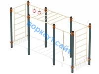 Оборудование спортивного зала – сложная задача. Инвентарь должен быть функциональным, а также интересным для юных спортсменов. Данный комплекс прекрасно подойдет для монтажа в парках, скверах, стадионах, придомовых территориях. Он предусматривает рукоход, турники, гимнастический канат, кольца. Все эти снаряды великолепно подойдут для отработки ряда воркаут упражнений, тренировки ребят из юношеских спортивных групп. С помощью данного комплекса подростки могут готовиться к соревнованиям, улучшая показатели выносливости, силы. Наш спортивный инвентарь оптимален для монтажа на даче, на территории школ, садов. Предоставляемые производителем изделия выполнены в соответствии с ГОСТом, сертифицированы.